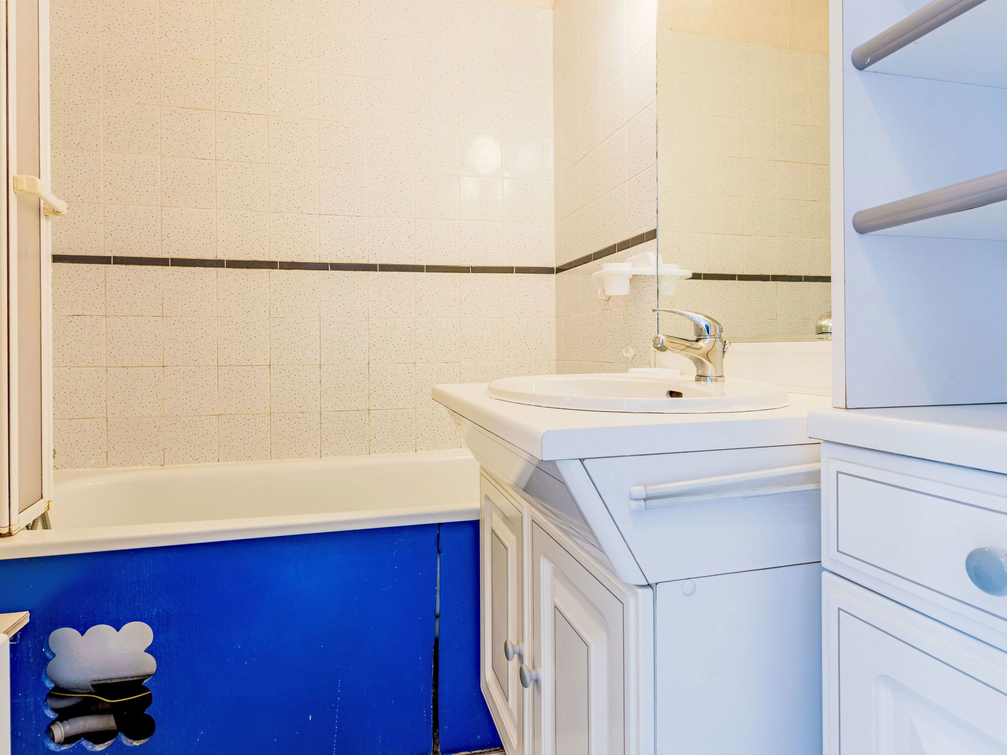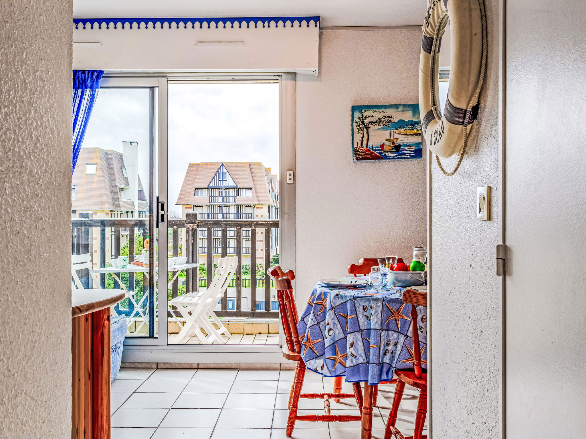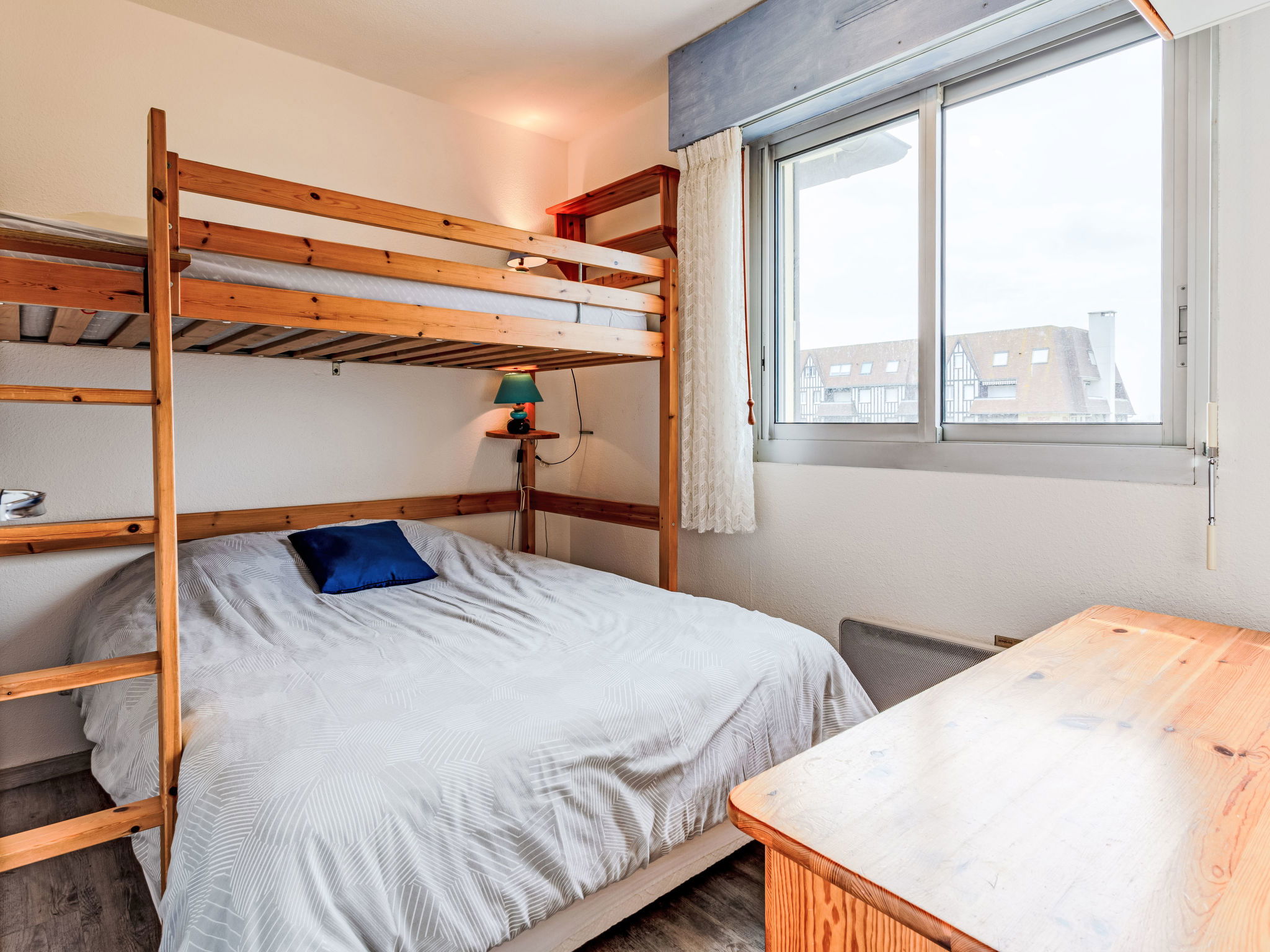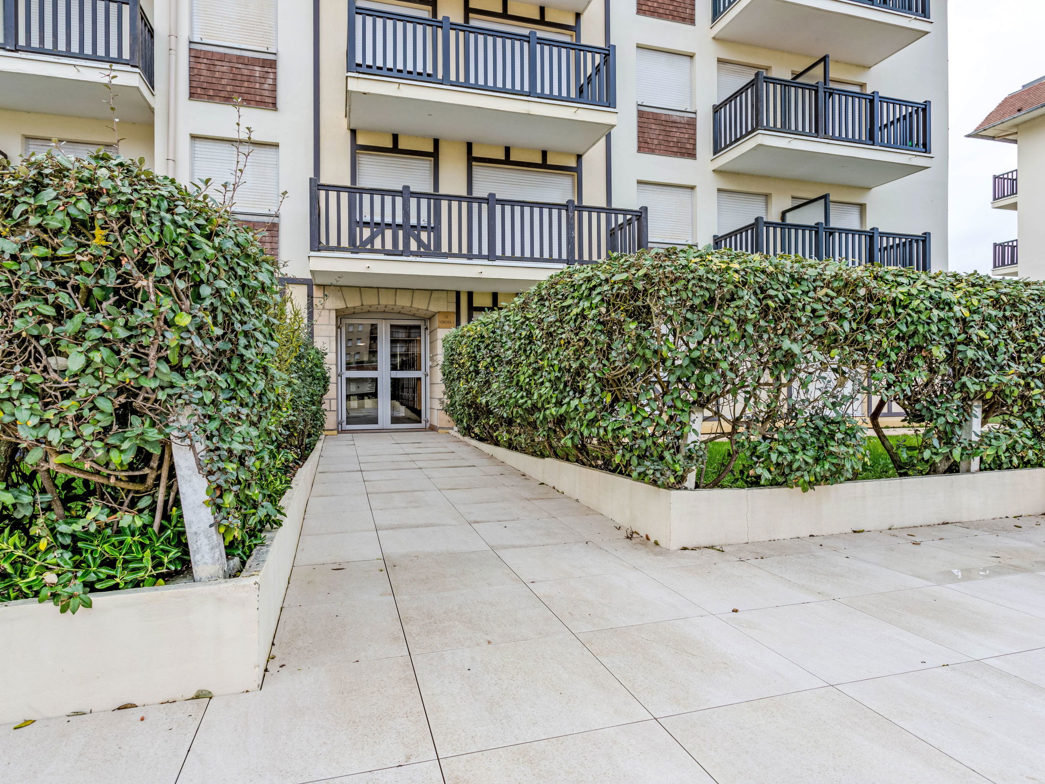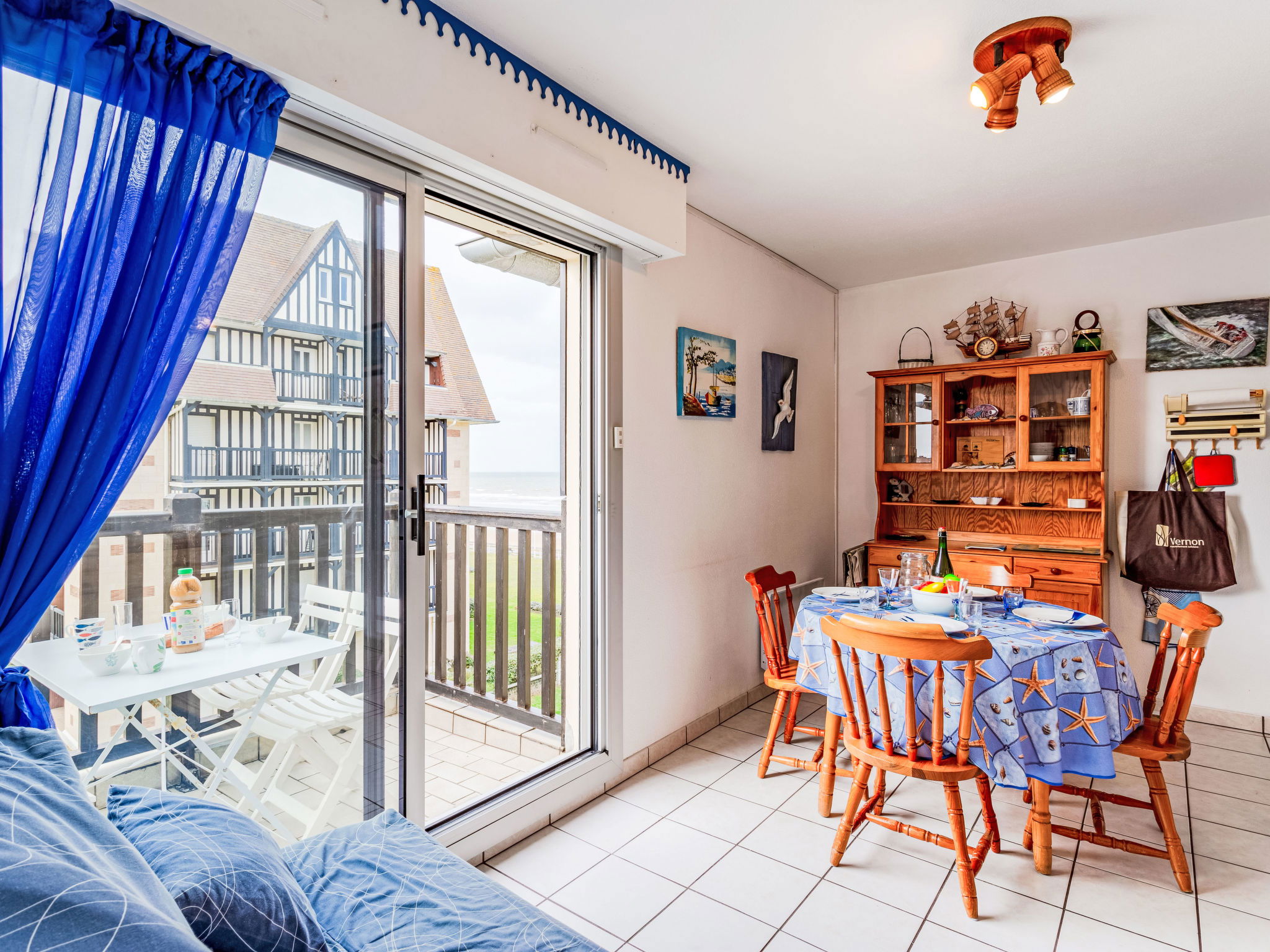Résidence "Les Normandières", de 5 étages. Dans la localité, à 2 km du centre de Cabourg, à 50 m de la mer, à 50 m de la plage, accès direct à la plage. En commun: piscine rectangulaire chauffée, cloturée (12 x 6 m, profondeur 80 - 180 cm, disponibilité saisonnière: 15.Jun. - 15.Sep. horaires d'ouverture de la piscine: 09:00-20:00) avec marches intérieures. Douche extérieure, tennis (1 x dur). Infrastructures de la résidence: ascenseur. Place de parking (nombre de places limité) sur le terrain, parking public possible dans la rue. Magasins 1 km, supermarché 800 m, restaurant 500 m, arrêt de bus "Oasis" 600 m, centre thermal "Thalazur" 800 m. Terrain de golf (18 trous) 1.2 km. Veuillez noter: D’autres appartements sont également proposés à la location dans cette maison de vacances.